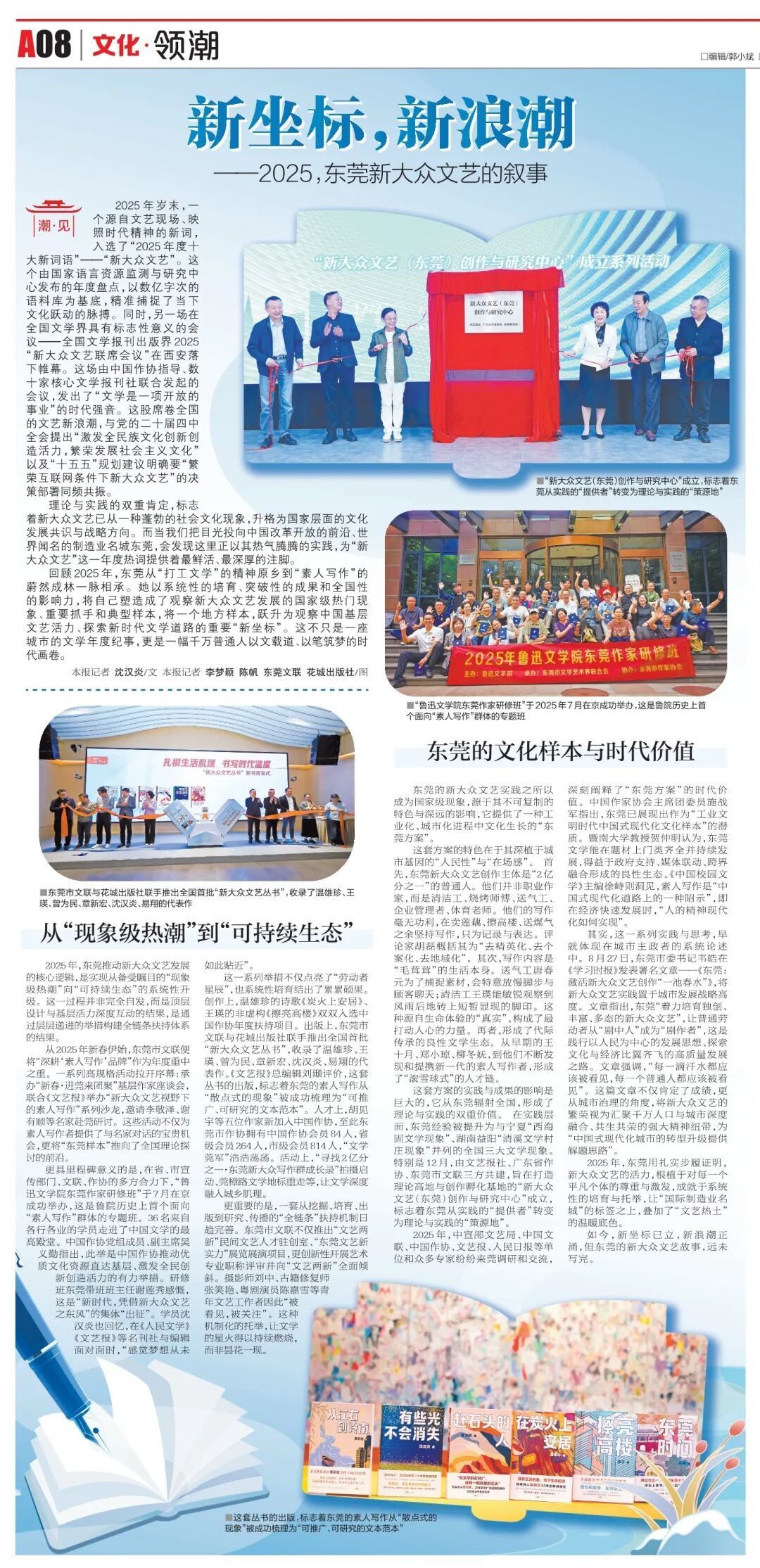 回顾2025年,东莞从“打工文学”的精神原乡到“素人写作”的蔚然成林一脉相承。她以系统性的培育、突破性的成果和全国性的影响力,将自己塑造成了观察新大众文艺发展的国家级热门现象、重要抓手和典型样本,将一个地方样本,跃升为观察中国基层文艺活力、探索新时代文学道路的重要“新坐标”。这不只是一座城市的文学年度纪事,更是一幅千万普通人以文载道、以笔筑梦的时代画卷。