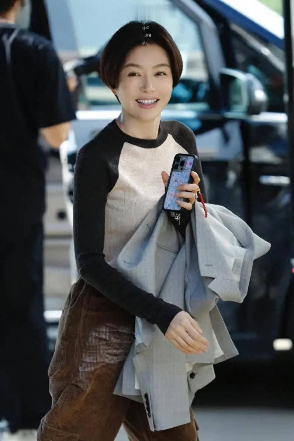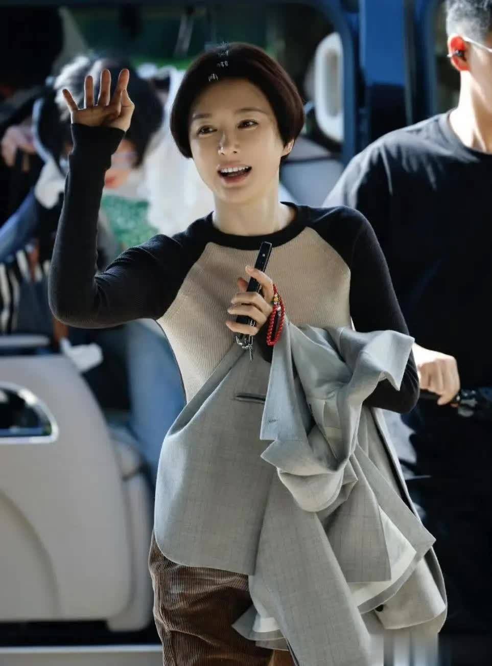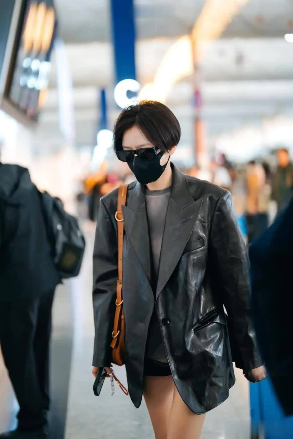 再看秦岚这一身机场造型,她将 “飒爽” 二字刻进骨子里,黑色皮质西装搭配下衣失踪穿法,再结合焦糖色挎包作为点睛之笔,酷飒与复古风交织,46 岁再次用穿搭打破年龄偏见,演绎出独属于成熟女性的高级酷感。