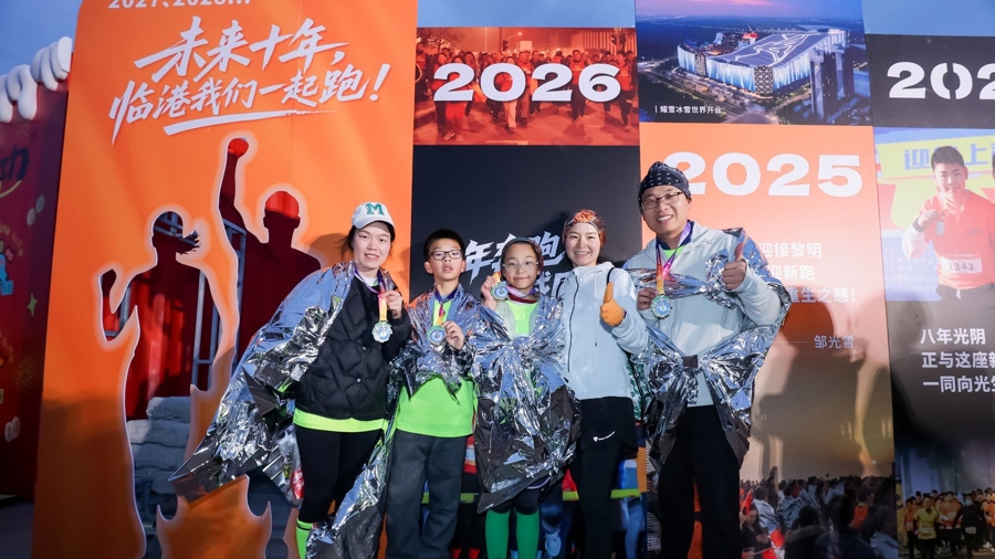 领奖台前,张雄威与妻儿并肩而立,共同托起那块沉甸甸的完赛奖牌,用镜头定格一家三口在新年首日共同完赛这一值得纪念的时刻。“迎新跑对我们来说,更像一场仪式。”张雄威说。在他眼中,这八公里不只意味着体能挑战,更是一场酣畅淋漓的心灵涤荡,将积攒一年的疲惫、遗憾与纷扰逐一卸下。“整个人跑透了,也就轻松了,像是把旧年真正留在了身后,有力量重新出发!”